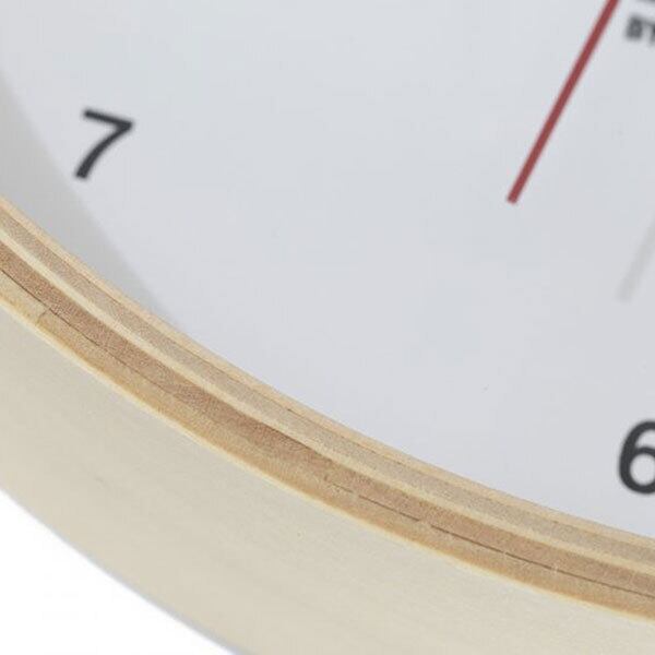 どこかレトロで懐かしさのある壁掛け時計。時計として最も基本的な見やすさということを重視した様々な空間になじむデザイン。美しいシナ材のプライウッドの枠体は、タンバリンやドラムといった楽器の枠を作る熟練した木工職人によってリング状に成型し美しい正円を作り出しています。