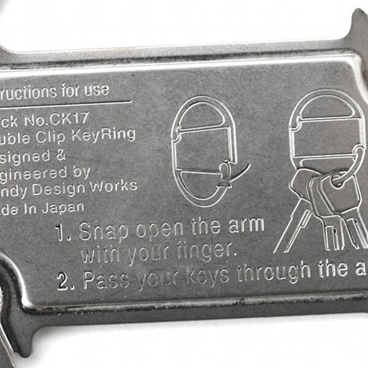 過去の工業製品からインスパイアされたアイテム製作を行うCANDY DESIGN&WORKS(キャンディデザインワークス)が再構築した1920-1930年代頃の会社PR用のキーリング。バネ式になったフック部分をスライドさせて簡単に鍵を取り外せる。