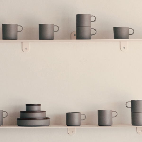 グレーの磁器で構成したコレクション。外側はエッジまでグレーのシャープな素材感、内側は釉薬でコーティングし艶を帯びた滑らかな表情。その質感のコントラストが際立つ。ブランド共通の直径モジュールと素地のマットな質感が、オリジナルコレクションとも調和し共存する。