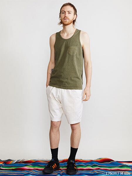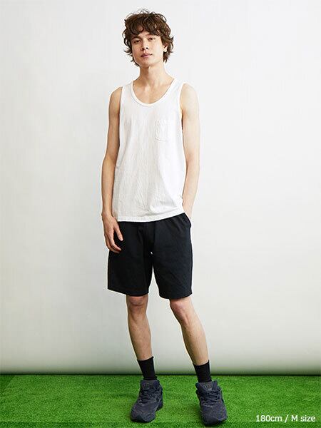 首周りや肩周りの開き具合いや全体のバランスを絶妙にデザインし、タンクトップ特有の下着感やルームウェアー的なラフ感を排除して体型やシーンを気にせず大人がTシャツ感覚で着ることのできるタンクトップに仕上げています。