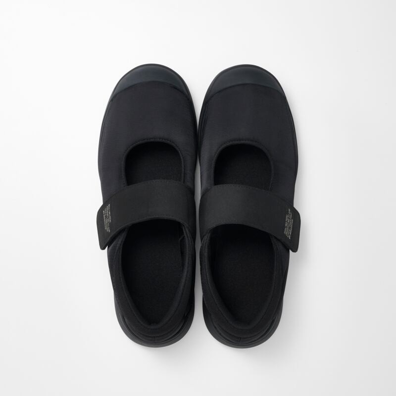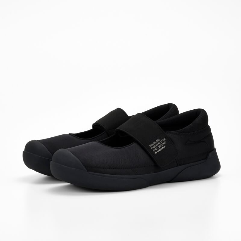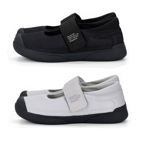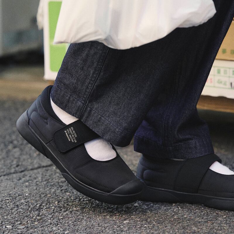 学生用の上履きをデイリーユースに。着用時のホールド感を考慮し、フィッティングベルトを搭載。ソールは床に色や跡が残るのを防ぐノンマーキング仕様。クッション性とグリップ性にも配慮した室内/屋外兼用のワンストラップタイプ。